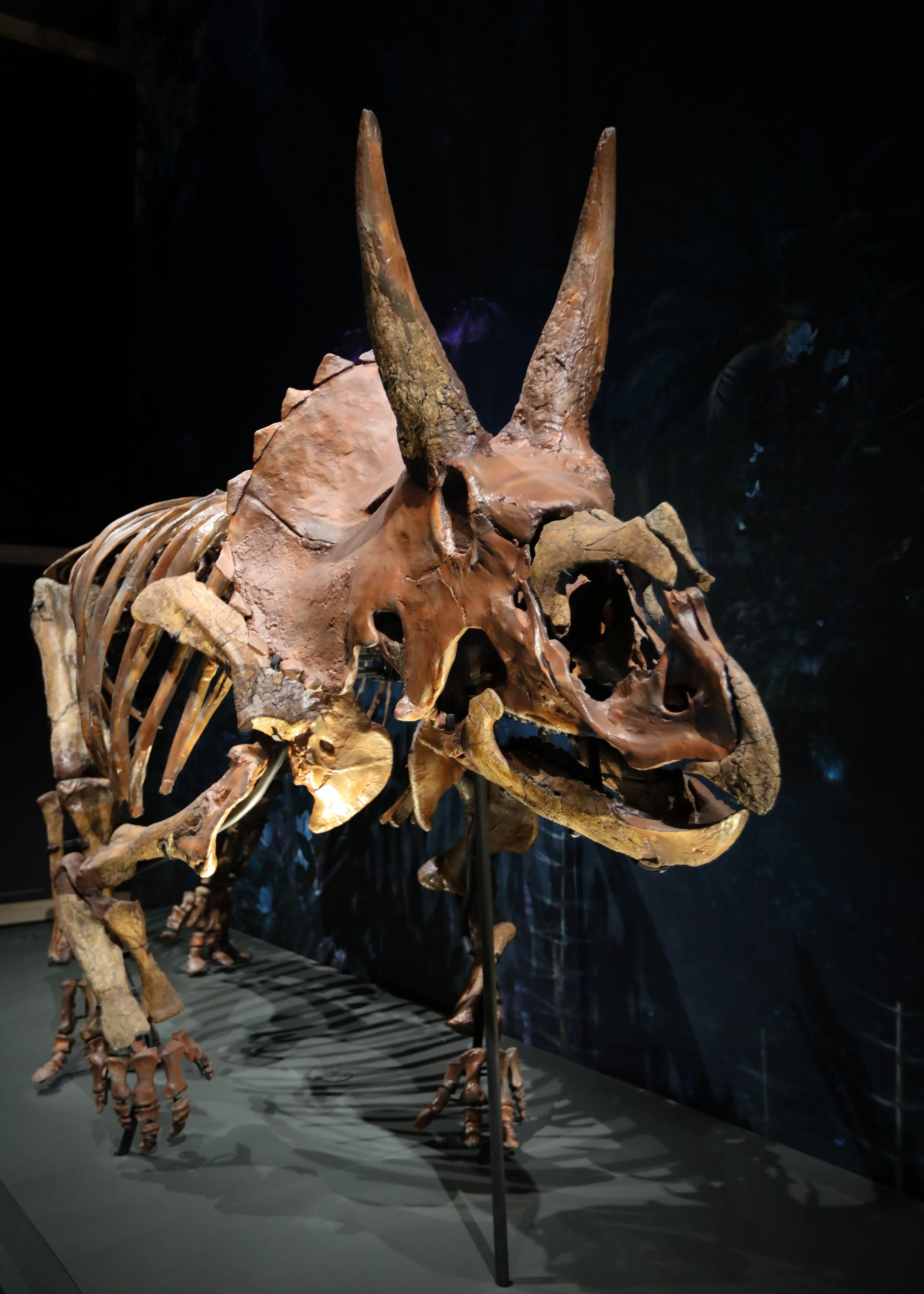 Explore the fossil remains of the Triceratops, one of the most powerful herbivores of the prehistoric world. From its massive skull to its strong limb bones, these ancient remains reveal how this armoured giant defended itself against predators millions of years ago