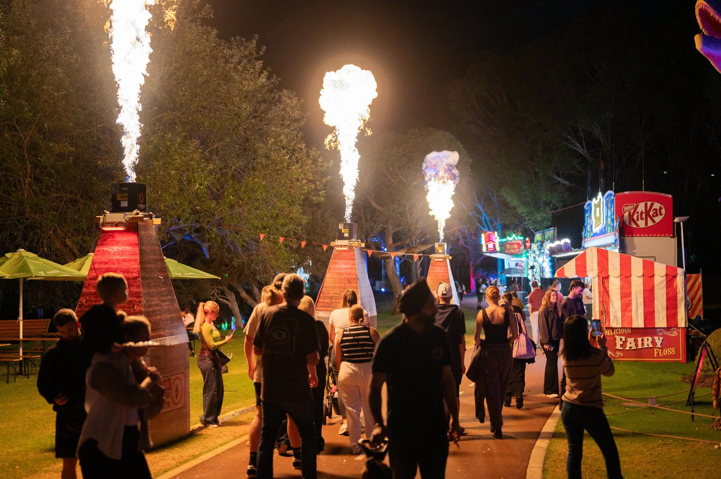 Fire will burst into the air from these epic towering structures. Watch from the sidelines but don’t get too close (we might have our very own fire breathing dinosaur inside!)