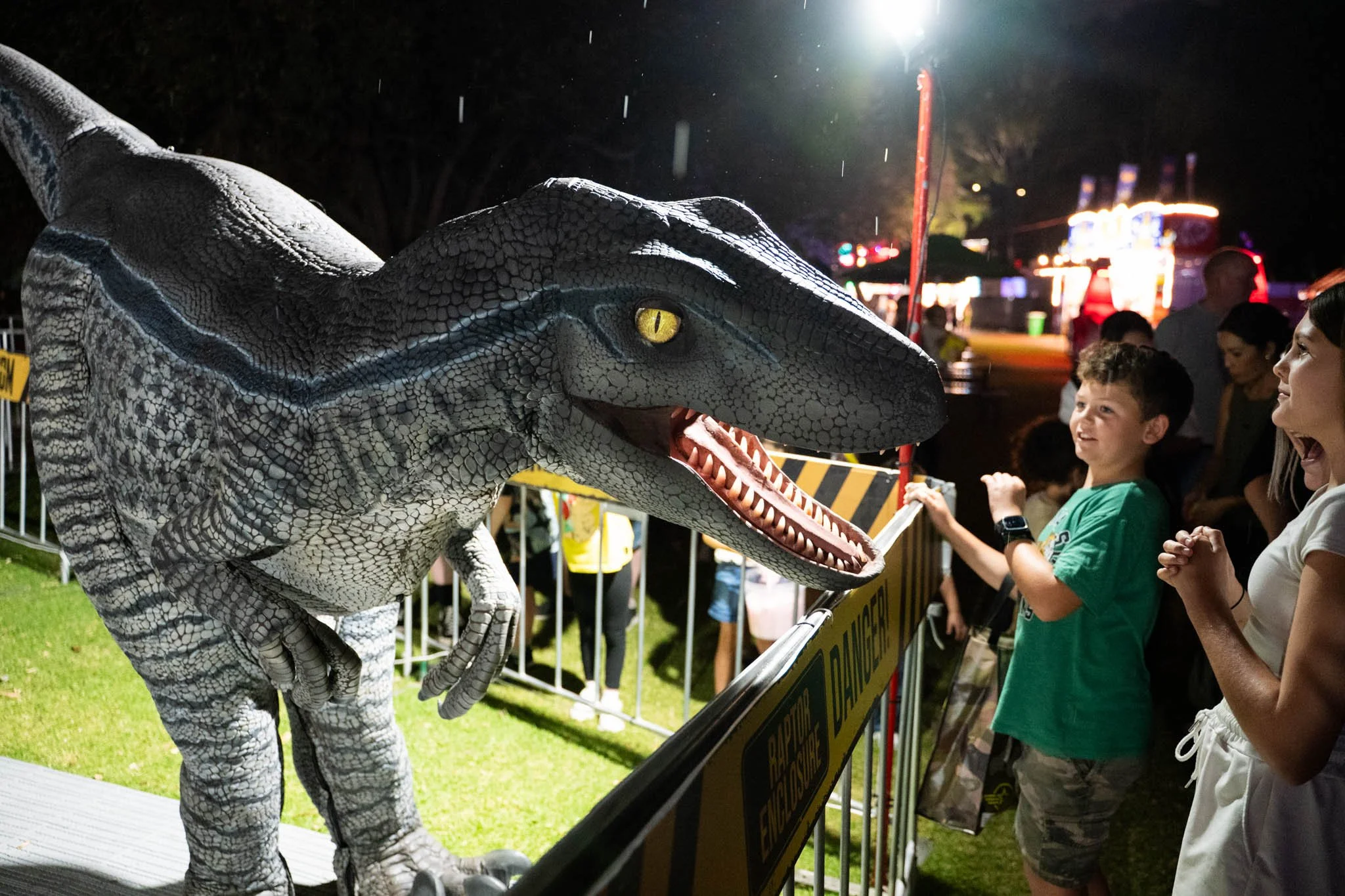 Venture deeper into the park to discover the returning Ice Age Exhibit, Raptor Valley (NEW), The Bone Yard (NEW) and The Hatchery (NEW), each transformed after dark with enhanced lighting, soundscapes and immersive detail. Younger explorers can visit the Baby Lab, featuring water-inspired dinosaurs, while thrill-seekers brave the Nova 93.7 Raptor Paddock, Fire Towers and the pulse of the Jurassic Carnival.